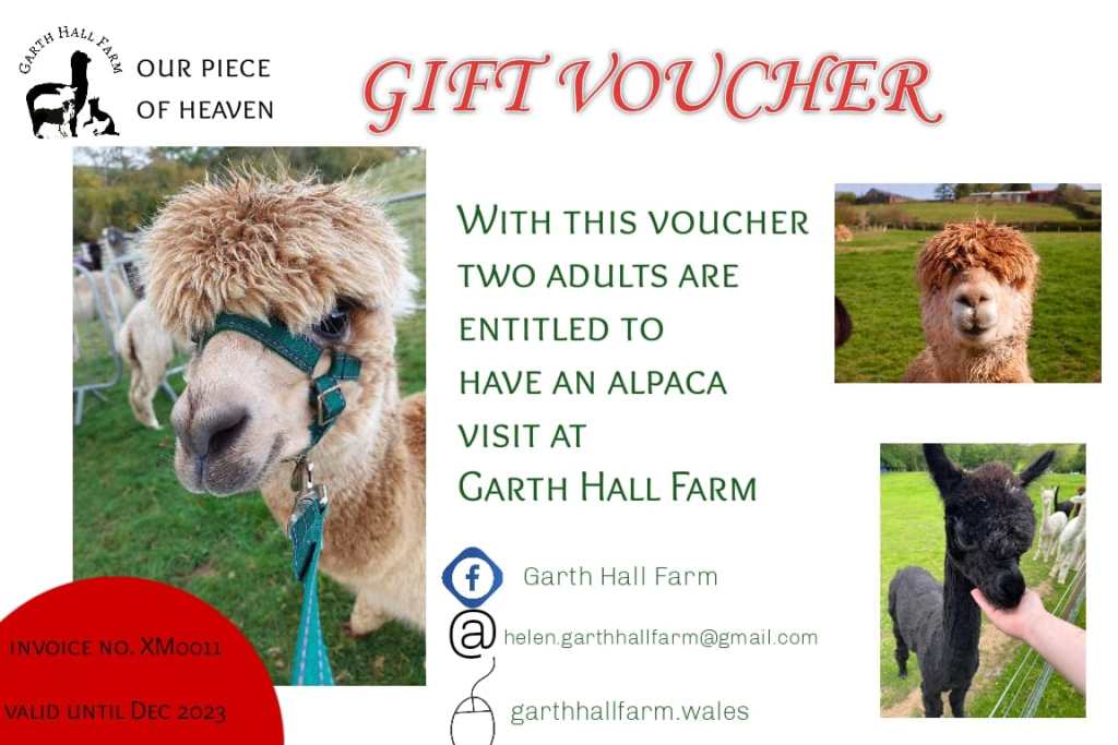 If you would like to buy a voucher to give someone the gift of visiting or walking our alpacas, please let us know through the contact page where we can customise and personalise your voucher with a photo of your choice and a message. Alternatively you can purchase a voucher via the ‘Book Here’ page and select ‘Buy as a gift’. We can offer, birthday vouchers, Christmas vouchers and wedding gifts etc.